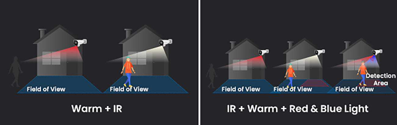 - The base model features built-in IR LED and warm lights, ensuring clear, high-detail imaging day and night. IR illumination delivers long-distance night vision, while warm lights restore true-color details in low-light environments.